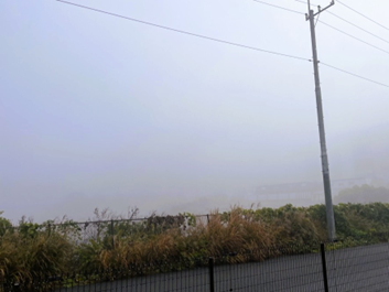 先日、すごい濃霧のなか出社しました。まるで雲の中にいるような。。。そう考えると、霧と雲は何か違うのでしょう?どちらも水滴の塊です。さてさて、どのくらいの霧だったかと言いますと、こんな感じ。