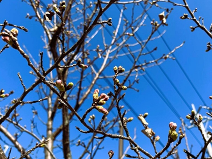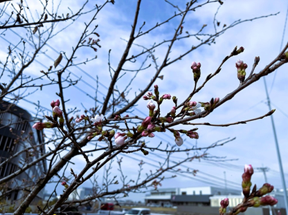 弊社のソメイヨシノさん、少し前からつぼみが膨らみ始めてきていたので、そろそろかしら!?と待っていたんです。